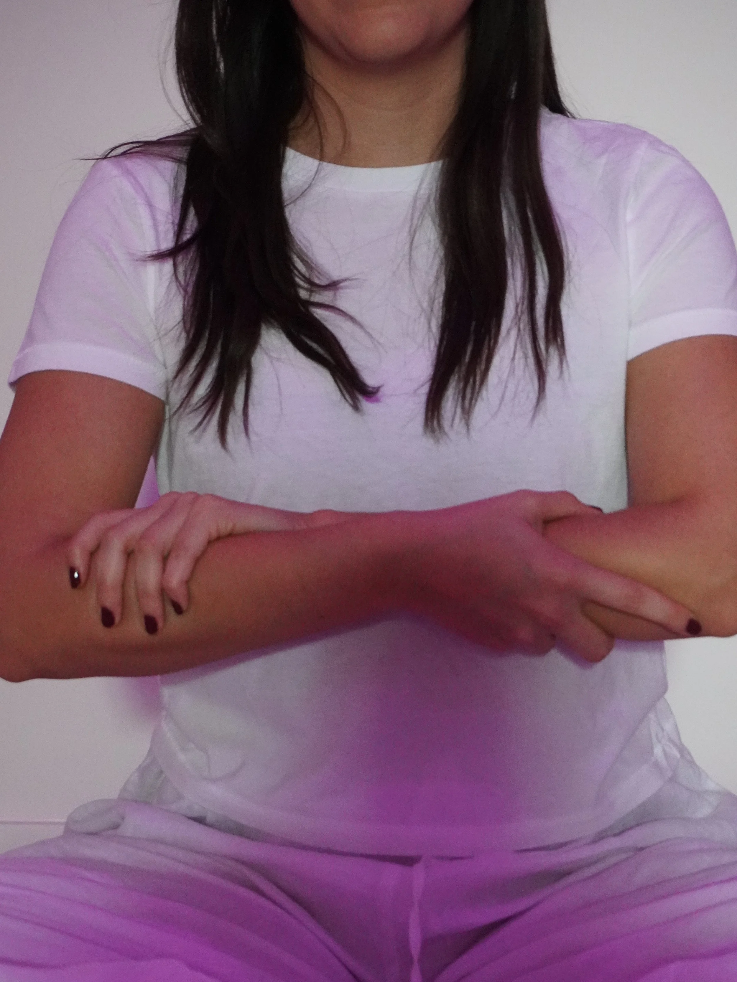 Self-Touch: start simple by holding one hand with the other as you play with pressure - squeezing more firmly and then letting you - allowing yourself to find a sense of curiosity for what feels best in your body. Once you have played around with it, you can choose to do the same on another part of your body - perhaps one that is in need of more love or compassion (for ex: heart, belly, shoulders, etc.)